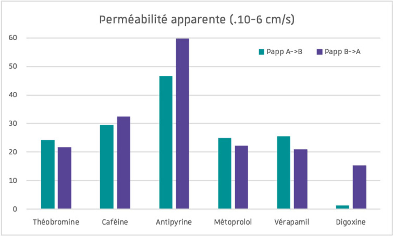 La lignée cellulaire Caco-2 (dérivée d’un carcinome colorectal humain) est le modèle utilisé in vitro pour l’évaluation de l’absorption d’un composé à travers la paroi intestinale.