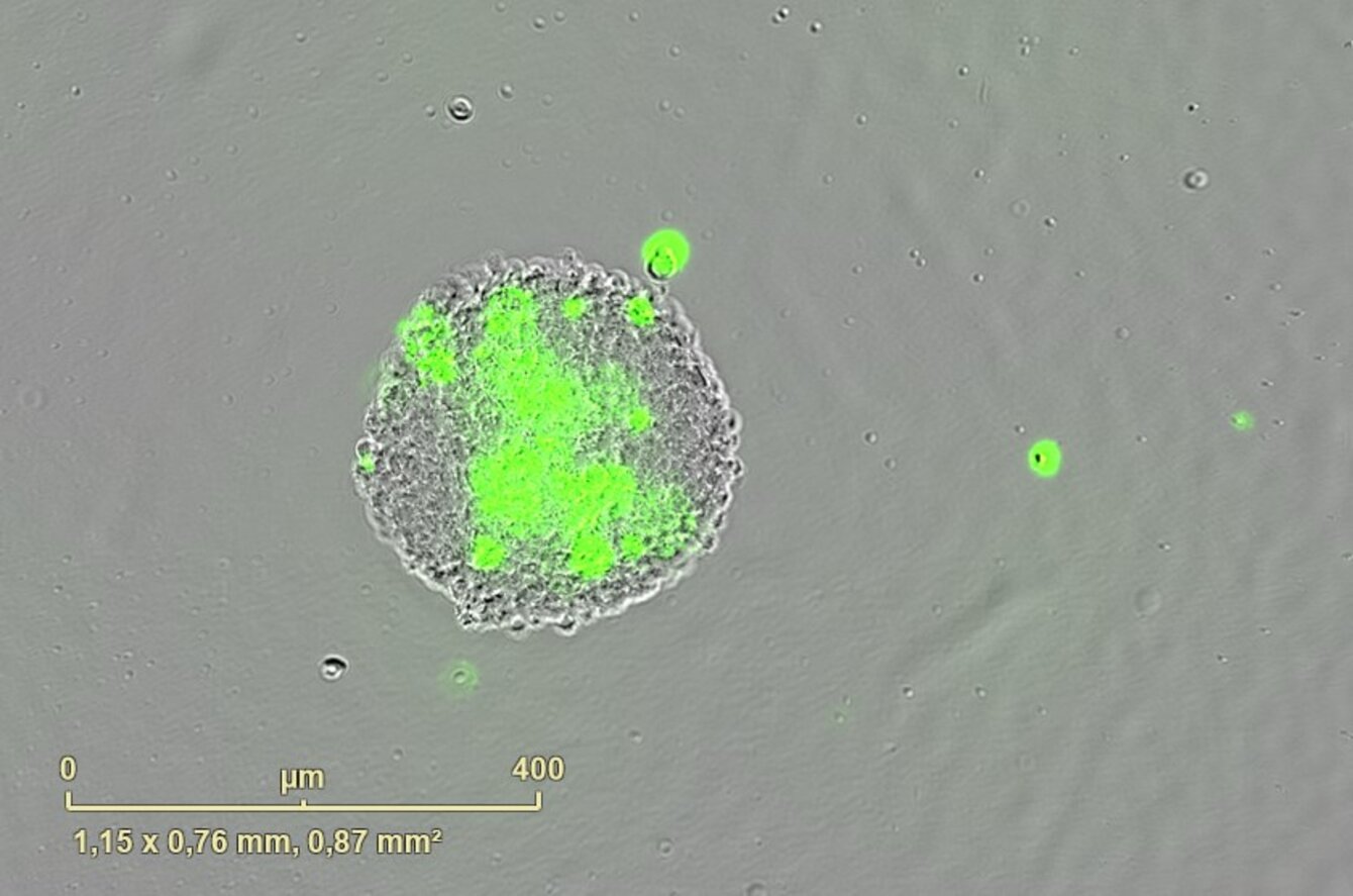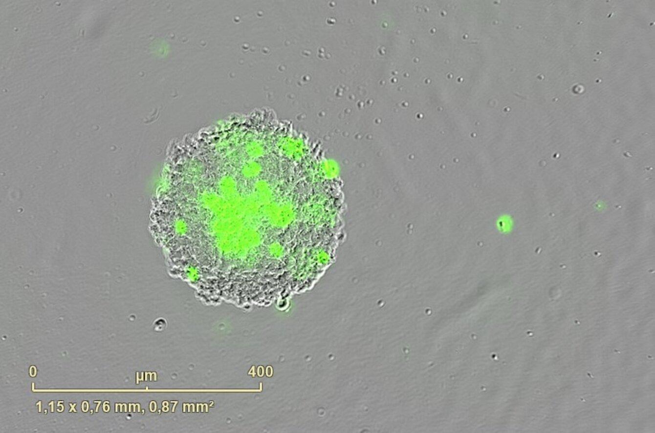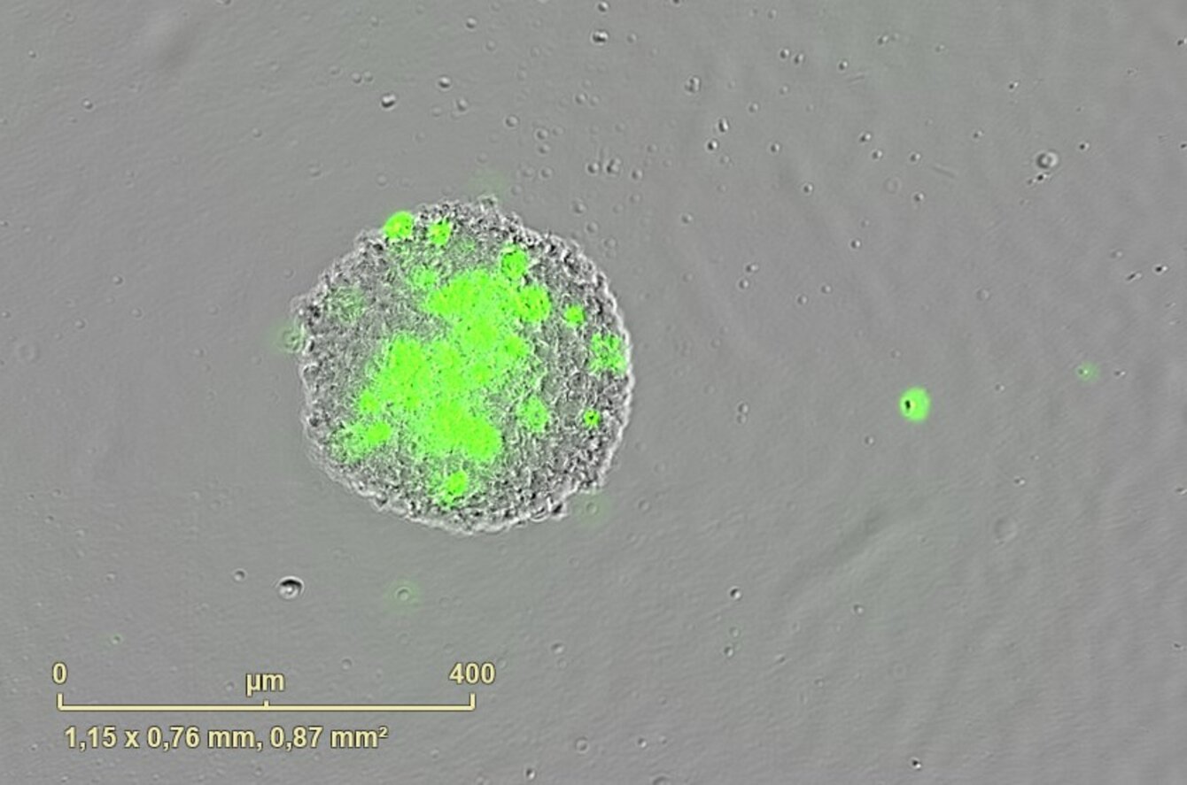 PCBIS propose un essai miniaturisé en microplaque sur sphéroïde de cellules de tumeur glioneuronale maligne pour l’évaluation de l’effet cytotoxique de composés. Celui-ci peut être quantifié soit par le suivi de la viabilité des sphéroïdes, soit par le suivi de la croissance des sphéroïdes.
