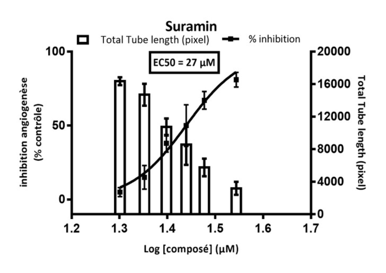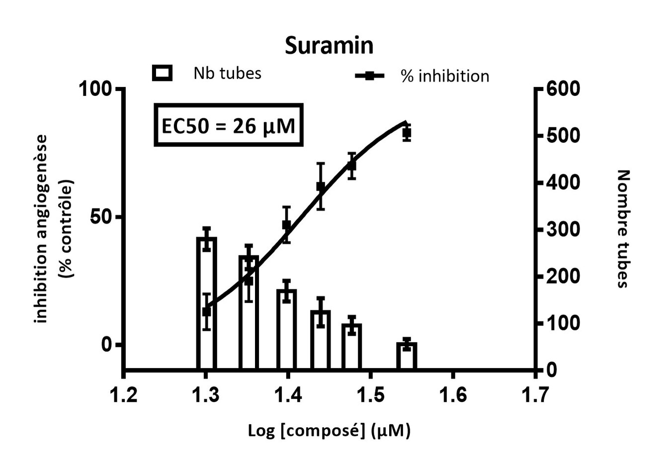L’angiogenèse, processus permettant la génération de nouveaux vaisseaux sanguins dérivés d’une vascularisation existante par les cellules endothéliales, peut être évaluée par la capacité des cellules endothéliales à former des structures tridimensionnelles.