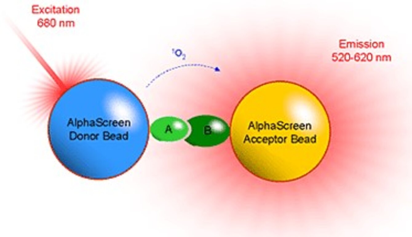 La technologie AlphaScreen™ (Amplified Luminescent Proximity Homogeneous Assay) , développée par PERKIN ELMER, est basée sur l’utilisation de deux billes complémentaires permettant la production d’un signal luminescent.