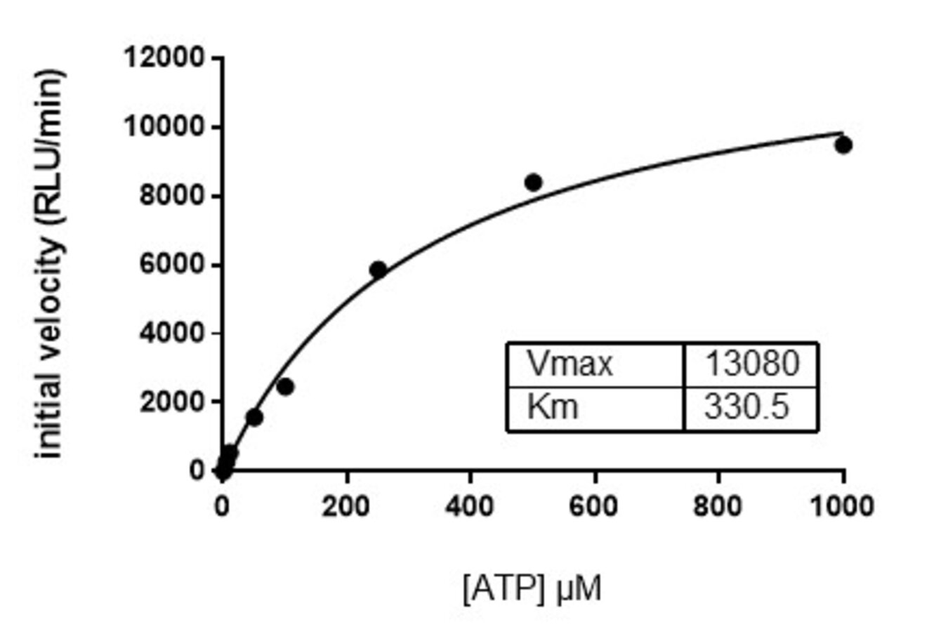 The reaction is quantified by measuring the luminescent signal which is proportional to the amount of ATP present in the reaction medium and thus inversely proportional to the enzymatic activity.